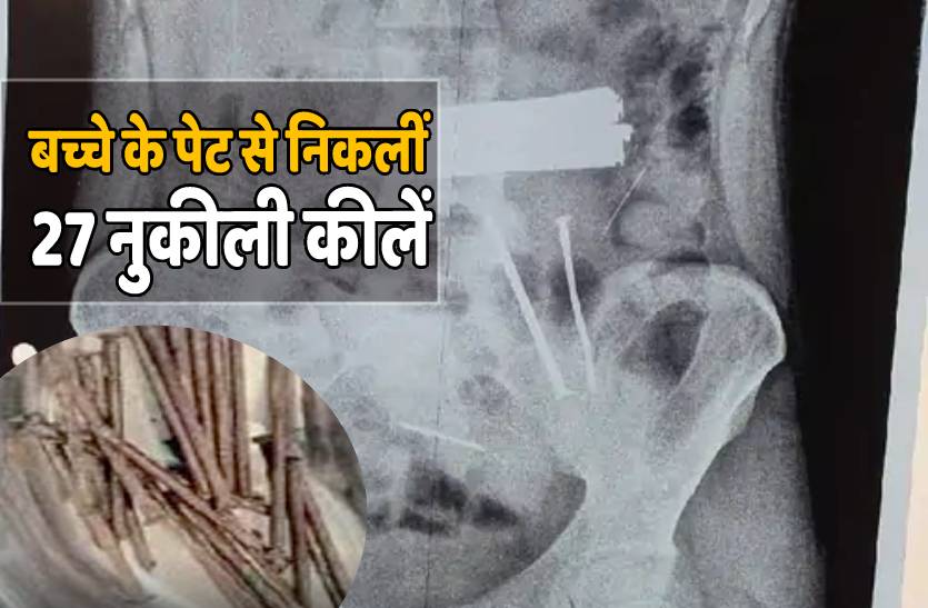 ग्वालियर. ग्वालियर में एक 10वीं के छात्र के पेट की जांच करने के बाद डॉक्टर्स भी हैरान रह गए। हैरानी की वजह छात्र के पेट में एक दो नहीं बल्कि दो दर्जन से ज्यादा नुकीली कीलें होना था। डॉक्टर्स ने ढ़ाई घंटे के जटिल ऑपरेशन के बाद छात्र के पेट से 27 नुकीली कीलें निकाली हैं दो 3-3 इंच लंबी हैं। डॉक्टर्स ने बताया कि 25 कीलें छात्र के आमाशय और 2 कीलें छोटी आंत से निकाली गई हैं। कीलें खाने के बाद भी छात्र के जिंदा रहने पर डॉक्टर भी हैरान हैं।