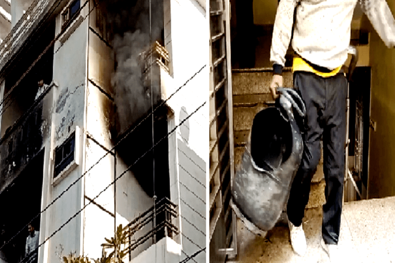 घटना के बाद बिल्डिंग में भगदड़ मच गई। सूचना पाकर फायर ब्रिगेड की टीम मौके पर पहुंची और आग बुझाने के साथ साथ दमकल कर्मियों ने फ्लैट में फंसे लोगों को सुरक्षित बाहर निकाल लिया। हालांकि, इस दौरान एक फ्लैट में रखा सिलेंडर फट गया, जिसकी चपेट में आकर बचाव कार्य में जुटे दो दमकलकर्मी झुलस गए हैं। दोनों दमकल कर्मियों के नाम इस्माईल खान और गिरीश बताया जा रहा है। इधर, जानकारी सामने आई है कि इस भीषण आगजनी में चारों फ्लैटों में रखा लाखों का सामान जलकर राख हो गया है। वहीं, शुरुआती जांच में ये भी पता चला है कि बिल्डिंग में फायर इक्विपमेंट के भी कोई इंतेजाम नहीं थे।