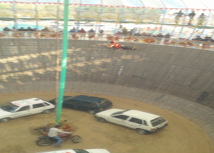 इन स्टंटमैनों के करतब इतने खतरनाक होते हैं कि वह हाथ छोड़कर, बाइक पर लेटकर, खड़े होकर ऐसे बाइक चलाते हैं मानो सीधी सड़क पर चला रहे हों। यह स्टंटमैन एक साथ लाइन में लगकर तीन से चार बाइक चलाते हैं वह दर्शकों के रोंगटे खड़े कर देता है। यही नहीं बाइक ही चलाते हों ऐसा भी नहीं है, यह कार भी उसी सफाई से कुएं की दीवार पर चलाते हैं जैसे बाइक चलाते हैं। कार में महिला सवारी बैठाकर भी चलाते हैं, तीन लोग बैठकर कुएं की दीवार पर कार 80 से 100 किलोमीटर की स्पीड में दौड़ती हुई जब दर्शकों के सामने से गुजरती है तो लोग तालियां बजाने से अपने आपको नहीं रोक पाते।