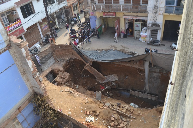 अवैध तलघर की खुदाई को भरने की कोशिश, ठेकेदार पर एफआइआर