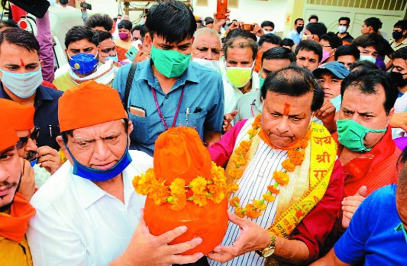 बजरंग दल के पूर्व राष्ट्रीय अध्यक्ष और पूर्व मंत्री जयभान सिंह पवैया सोमवार सुबह अयोध्या के लिए निकले। पवैया अपने साथ चंबल नदी का पानी और पीतांबरा सिद्ध पीठ की पवित्र माटी लेकर गए। जल और मिट्टी को अयोध्या में होने वाले राममंदिर निर्माण की नींव में डाला जाएगा। पीतांबरा पीठ की पवित्र मिट्टी विक्रम बुंदेला ने 2 अगस्त को पूर्व मंत्री जयभान सिंह पवैया को सौंपी। पवैया रविवार शाम को अयोध्या पहुंचे और तीन दिन रहेंगे।