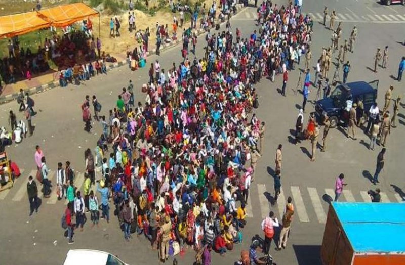 पलायन कर गांव जा रहे लोग रोते हुए बोले -प्लीज साहब हमें घर जाने दूं, बच्चे भूखे प्यासे हैं
