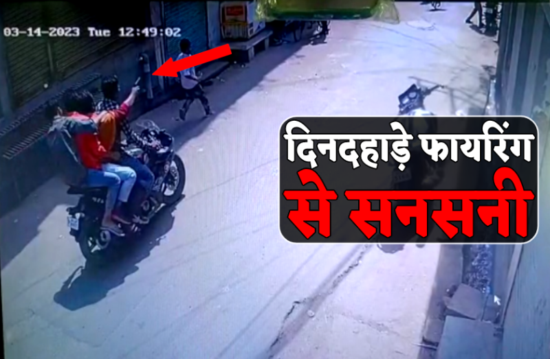 दिनदहाड़े एक बाइक पर सवार होकर आए 4 बदमाशों ने की फायरिंग, इलाके में सनसनी, वारदात CCTV में कैद