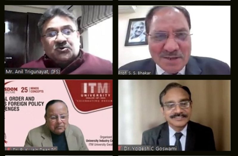 द्वितीय विश्व युद्ध के बाद पूरी दुनिया दो खेमों में बंट गई थी। कुछ रूस के साथ तो कुछ अमेरिका के साथ। गुटनिरपेक्ष रहना मुश्किल था। भारत गुटनिरपेक्ष रहा। कुछ समय के लिए रूस के विघटन के बाद जब तक चीन दृश्य पर नहीं आया, तब तक संयुक्त राज्य अमेरिका प्रमुख शक्ति बन गया। अब चीन नेपाल, बांग्लादेश, श्रीलंका और भूटान जैसे छोटे देशों को प्रभावित करने की कोशिश कर रहा है। चीन की नीति इन देशों में बड़ी परियोजनाएं शुरू करने की है वो भी तब जब वे इन परियोजनाओं को हासिल करने के लिए भुगतान करने में सक्षम नहीं हैं। कुछ ऐसी ही महत्वपूर्ण जानकारी दे रहे थे माल्टा, जॉर्डन और लीबिया में राजूदत रह चुके अनिल त्रिगुणायत। वे आइटीएम यूनिवर्सिटी के 12वें विज्डम लेक्चर सीरिज में मुख्य वक्ता के रूप में उपस्थित थे। उद्घाटन भाषण आइटीएम यूनिवर्सिटी के वाइस चांसलर डॉ एसएस भाकर ने दिया।