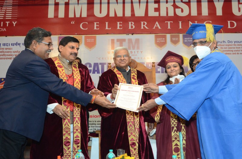 समाज और देश को युवाओं से बहुत अपेक्षाए हैं। कभी ऐसा कार्य मत करना, जिससे आपकी वजह से समाज व देश को नीचा देखना पड़े। कभी भारत मां पर लांछन मत लगने देना। प्रधानमंत्री नरेन्द्र मोदी ने युवाओं के लिए अनुकूल वातावरण बनाया है। युवा नौकर नहीं नौकरी देने वाले बने। उनके लिए कई योजनाएं शुरू की गई हैं। यह बात मप्र के राज्यपाल मंगुभाई पटेल ने आइटीएम यूनिवर्सिटी के छठवें दीक्षांत समारोह में कही। समारोह दो सत्रों में बांटा गया, पहले सत्र में प्री-कन्वोकेशन सेरेमनी रखी गई। दूसरा सत्र कन्वोकेशन सेरेमनी का रहा, जिसमें मानद उपाधियां व डिग्रियां प्रदान की गईं। विशिष्ट अतिथि के रूप में उच्च शिक्षा मंत्री मोहन यादव उपस्थित रहे। देश की 7 हस्तियों को मानद उपाधि से नवाजा गया, जिनमें से
