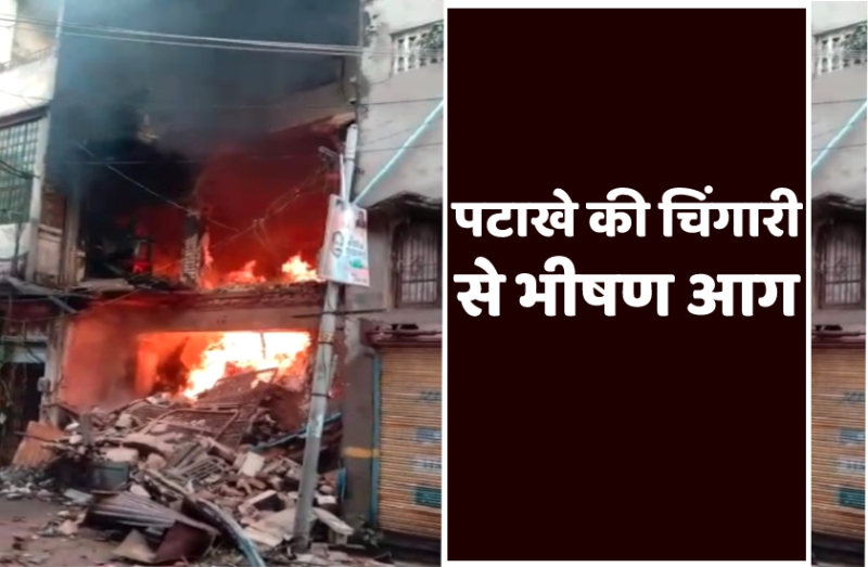 पटाखे की चिंगारी से जूते के गोदाम में लगी भीषण आग, जान बचाने के लिए छत से कूदे भाजपा नेता