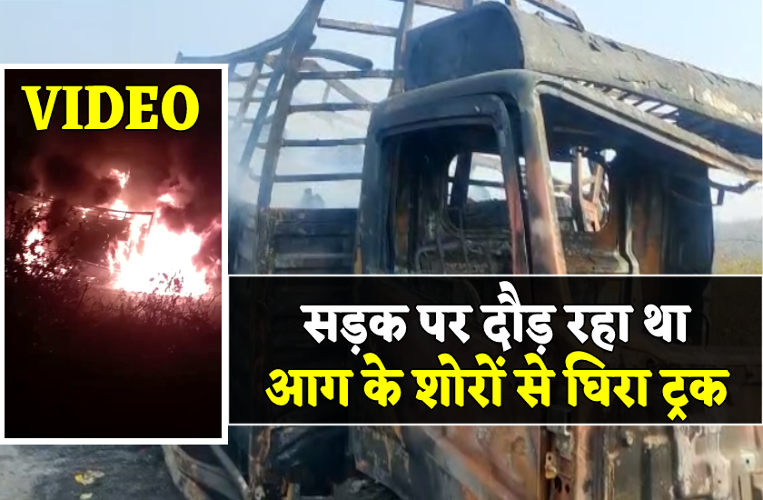 सड़क पर आग का गोला बनकर दौड़ रहा था ट्रक, अंदर फंसे थे ड्राइवर और क्लीनर