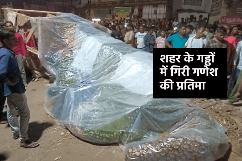 Ganesha idol fell: ग्वालियर शहर की गड्ढेदार और जर्जर सडक़े एक बार फिर से विघ्नहर्ता पर भारी पड़ी हैं। खल्लासीपुरा में विराजित करने के लिए ले जा रही गणेश प्रतिमा विराजित होने से पूर्व ही बीच रास्ते में धड़ाम हो गई।