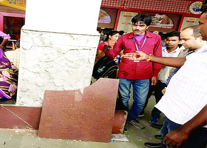ग्वालियर. रेलवे स्टेशन पर चल रहे विकास कार्य के घटिया होना आज यहां हुई घटना में साबित हो गया। घटना प्लेटफॉर्म एक पर शुक्रवार को पिलर पर लगा ग्रेनाइट पत्थर गिरने से वहां खेल रहा मासूम बाल-बाल बच गया, लेकिन पत्थर के टुकड़े लगने से उसे मामूली चोट आई है।