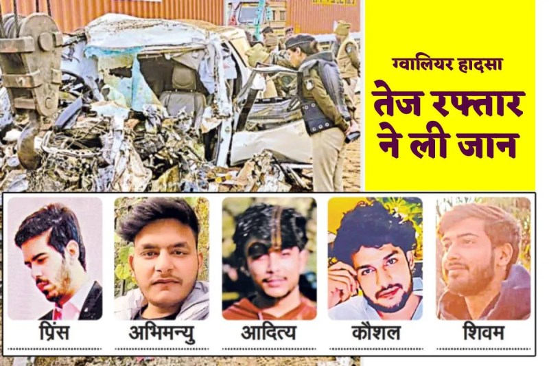 Gwalior Car Accident: प्रारंभिक जांच में तेज रफ्तार कार बनी भीषण हादसे का कारण। (फोटो: पत्रिका)