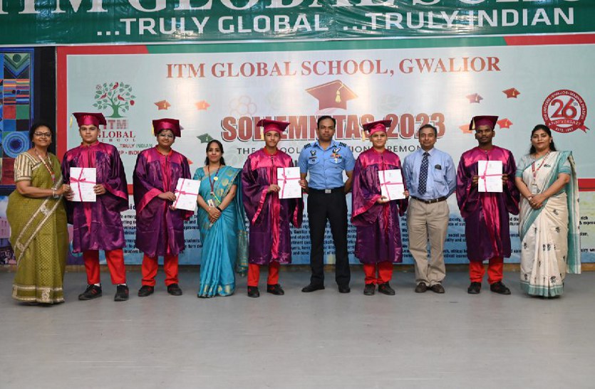 आइटीएम ग्लोबल स्कूल में ग्रेजुएशन सेरेमनी ‘सोलीमनिटास-2023’ का आयोजन किया गया। स्कूल के ग्रेड केजी, ग्रेड-5, ग्रेड-8, ग्रेड-10, ग्रेड-12 के स्टूडेंटस को उनके स्कूली एजुकेशन का एक फेज पूरा करने के लिए ग्रेजुएशन सर्टिफिकेट दिए गए। कार्यक्रम में एयरफोर्स ग्वालियर से ग्रुप कैप्टन अचिन पिल्लई उपस्थित रहे। साथ ही र्आटीएम ग्लोबल स्कूल की चेयरपर्सन रूचि सिंह चौहान, प्रिंसिपल डॉ. सुजाश भट्टाचार्य, डीन अकाडेमिक अनीता मित्तल, सीएओ रेणु अग्रवाल उपस्थित रहे।