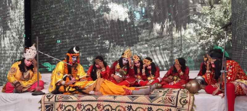 ग्वालियर. मुरार के रामलीला मैदान में शुक्रवार को लक्ष्मण शक्ति लीला का भव्य मंचन किया गया। सर्वप्रथम राम और रावण की सेनाओं के बीच युद्ध प्रारंभ होता है। राम की सेना रावण की सेना के प्रधान वीरों का वध कर देती है। इससे क्रोधित होकर रावण अपने पुत्र मेघनाथ को युद्ध भूमि में भेजता है। मेघनाथ युद्ध में राम और लक्ष्मण पर नागपाश फेंकता है और उन्हें नागपाश में बांध देता है जिससे दोनों भाई मूर्छित हो जाते हैं फिर हनुमान गरुण को बुलाते हैं और गरुण शर्त रखते हैं कि मुझे पहले अगले जन्म के दर्शन दीजिये तभी मैं बंधन खोलूंगा। फिर प्रभु श्रीराम गरुण को अपने कृष्णावतार के दर्शन देते हैं तब गरुण नागपाश खोलते हैं। उसके बाद मेघनाथ फिर से युद्ध के लिए आता है और लक्ष्मण पर शक्ति प्रहार करता है और लक्ष्मण धरती पर मूर्छित होकर गिर जाते हैं। लक्ष्मण को शक्ति लगने से राम जी बहुत दु:खी होते हैं फिर विभीशन के कहने पर हनुमान लंका से वैध सुसेन को लेकर आते हैं। सुसेन बतात हैं कि रात में ही संजीवनी बूटी आने पर ही लक्ष्मण के प्राण बच सकते हैं। फिर राम हनुमान को बूटी लेने भेजते हैं और हनुमान को बूटी पहचानने में परेशानी होती है। ऐसे में हनुमान पूरा पहाड़ ही उठा लेते हैं, जब हनुमान पहाड़ उठाकर वायु मार्ग से जा रहे होते हैं तो भरत उन्हें कोई दुष्ट समझकर उन पर बाण से प्रहार करते हैं जिससे हनुमान जी पृथ्वी पर गिर जाते हैं और राम-राम कहने लगते हैं। भरत को पता चल जाता है कि ये तो राम भक्त हैं और उनसे बाण प्रहार करने पर दु:ख प्रकट करते हैं। फिर हनुमान उनको सारी बात बताने के बाद वहां से लंका के लिए प्रस्थान करते हैं। उधर प्रभु राम भाई की इस अवस्था से दु:खी होकर साधारण मनुष्य के समान विलाप कर रहे होते होते है तभी हनुमान वहां बूटी लेकर पहुंचते है और वैध सुसेन लक्ष्मण को बूटी देते हैं जिससे लक्ष्मण स्वस्थ हो जाते हैं। सभी में खुशी की लहर दौड़ जाती है। शनिवार को कुंभकर्ण, मेघनाथ वध की लीला का मंचन होगा।