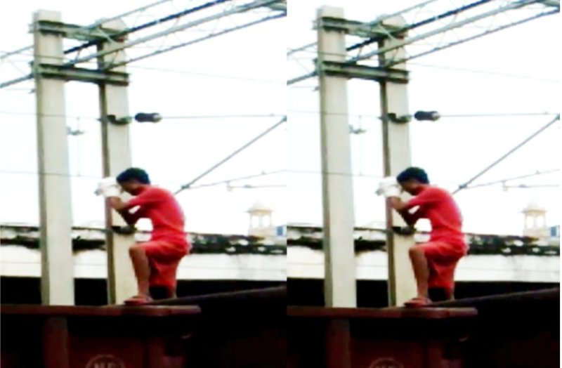 रेलवे स्टेशन पर मैन लाइन पर खड़ी मालगाड़ी पर एक युवक चढ़ गया। युवक के ऊपर से हाईटेंशन लाइन निकली हुई थी। जैसे ही युवक चढा़ स्टेशन पर शोर मच गया। लोगों की भीड़ ने शोर मचाना शुरू कर दिया। जीआरपी और रेलवे पुलिस भी मौके पर आ गई। लेकिन युवक नीचे नहीं आया। सभी को डर था कि कहीं वह तेज करंट की तार को नहीं पकड़ ले। तभी स्टेशन मास्टर के कहने पर ओएचई लाइन को बंद करा दिया गया और तुरंत ही पुलिस ने युवक को पकड़ लिया। युवक अपने दाहिने हाथ में पॉलीथीन बांधे हुए था। शायद वह ऐसा करंट से बचने के लिए किया हो ऐसा पुलिस का कहना है। वहीं पुलिस ने बताया है कि यह युवक मानसिक विक्षिप्त है। पहले भी कई बार पुलिस ने इसे पकड़ कर कार्रवाही की है। पुलिस के मुताबिक युवक को हिरासत में लेकर हवालात में डाल दिया है।