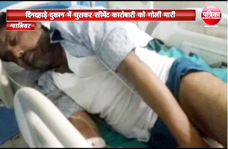 ग्वालियर। सीमेंट कारोबारी को दो गुंडों ने सोमवार दोपहर करीब ३ बजे उसकी दुकान में गोली मार दी। सरेआम फायरिंग कर गुंडे कट्टे लहराते हुए भाग गए। दिनदहाड़े वारदात से चार शहर का नाका पर सनसनी फैल गई। गोली कारोबारी की जांघ में धंसी है। अस्पताल ले जाते समय बेहोश होने की वजह से वह नहीं बता सका कि उसे गोली क्यों मारी है। परिवार का कहना है कि पुश्तैनी जमीन को लेकर उनका विवाद चल रहा है। दोनों गुंडे पहचान छिपाने के लिए मुंह पर कपड़ा बांध कर आए थे। बाजार में कई जगह सीसीटीवी लगे हैं, उनके फुटेज से गोली मारने वालों की पहचान की कोशिश की जाएगी।