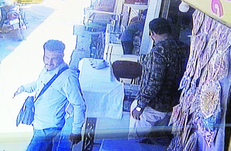 दोनों करीब ३२ से ३५ साल के थे। वह लगभग १० मिनट दुकान में रहे। एक ने काली टोपी लगा रखी थी, उसने ही जेवर चुराए। दूसरा बेंच पर बैठकर नजर रखे था। चोरों ने कहा कि सोने का पेंडल खरीदना है। कुछ जेवर देखने के बाद करीब ४ रत्ती का १२०० रुपए कीमत का पेंडल पसंद किया। उसका भुगतान कर चोरों ने झुमकियां दिखाने के लिए कहा, तो झुमकियों का डिब्बा उठाकर उनके सामने रख दिया।