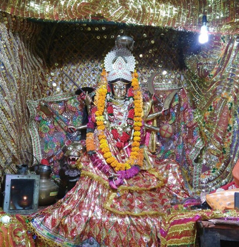 मलखान प्रतिदिन ब्रह्ममुहूर्त में पत्नी गजमोतिन के साथ देवी की पूजा-अर्चना किया करता था।अंचल में मान्यता है कि मलखान आज भी सूक्ष्म शरीर से माता की पूजा अर्चना के लिए नित्य मंदिर में आता है। कालांतर में सिरसा की बावड़ी में जल स्तर बढ़ जाने से मन्दिर के गर्भगृह की ओर जाने वाले दरवाजे जलमग्र होकर लुप्त हो गए हैं। मन्दिर के गर्भगृह में जगदम्बा दुर्गा की आदमकद और मोहक स्वर्ण प्रतिमा स्थापित है जो श्रद्धालुओं को सहज ही अपनी ओर आकर्षित करती है।