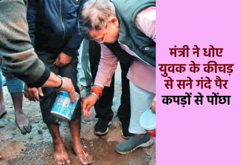 तोमर ने पानी मंगाकर पैर धुलवाए, पैरों को पोंछा भी- ग्वालियर की खराब सड़कों को लेकर नंगे पैर घूम चुके ऊर्जा मंत्री प्रद्युम्न सिंह तोमर अब भी इससे परेशान ही हैं। केंद्रीय मंत्री ज्योतिरादित्य सिंधिया ने उनके पैर में चप्पल पहना दी थी, लेकिन सड़कों की हालत अभी तक नहीं सुधर पाई है। इन्हीं सड़कों का जायजा लेने के लिए मंत्री तोमर सोमवार को शहर में निकले थे। जब वे मेंटल हॉस्पिटल चौराहा से विनय नगर सेक्टर-2 की सड़क का निरीक्षण कर रहे थे, तभी एक युवक वहां की समस्या बताने के लिए आया, लेकिन सड़क पर फैले गंदे पानी से उसके पैर कीचड़ से सन गए थे। इसे देखते ही तोमर ने पानी मंगाकर उसके पैर धुलवाए। पैरों को पोंछा भी।