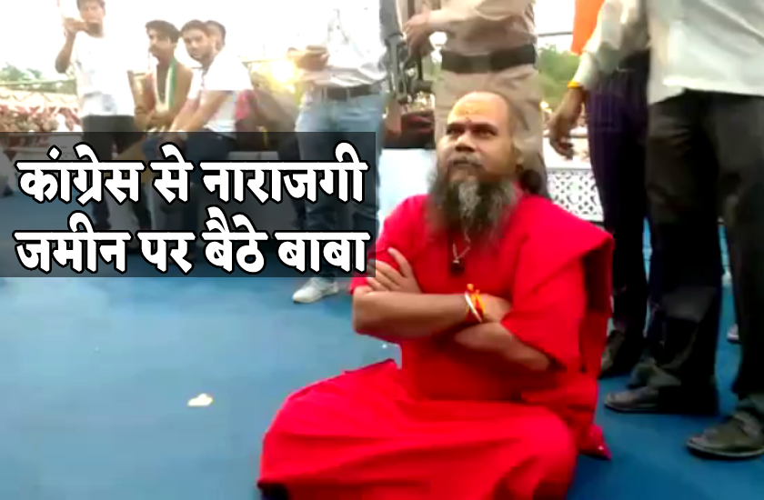 कांग्रेस की सभा में नाराज होकर जमीन पर बैठ गए मिर्ची बाबा, जानिए क्या है कारण