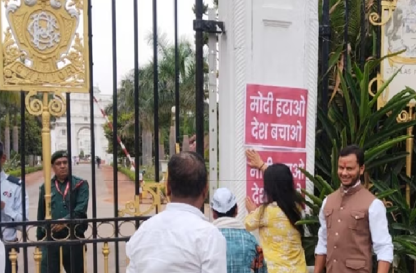 कार्यकर्ता राष्ट्रव्यापी आह्वान पर फूलबाग गेट पर जमा होने वाले आप पार्टी के कार्यकर्ताओं के हाथों में इस दौरान 'मोदी हटाओ,देश बचाओ' लिखी हुई तख्तियां थीं। वहीं इसके नारे भी कार्यकर्ता लगा रहे थे। तभी इन कार्यकर्ताओं का एक जत्था जयविलास पैलेस के मुख्य दरवाजे पर पहुंच गया, जिसमें महिलाएं भी थीं। लेकिन महल का गेट बंद होने से ये लोग अंदर तो नहीं आ सके, ऐसे में इनके द्वारा महल के गेट पर ही 'मोदी हटाओ, देश बचाओ' लिखा पोस्टर चिपका दिया गया।
