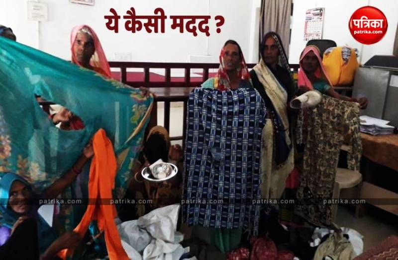 पीड़ितों का आरोप है कि प्रशासन ने फटे पुराने कपड़े बांट दिए। जूते चप्पल भी टूटी मिली है। जब पीड़ितों ने गठरी से कपड़े निकाले तो फटे पुराने मिले। जिससे नाराज होकर सभी पीड़ित शुक्रवार सुबह मिले सामान को लेकर भितरवार एसडीएम कार्यालय पहुंचे और एसडीएम को फटे पुराने कपड़े दिखाए।