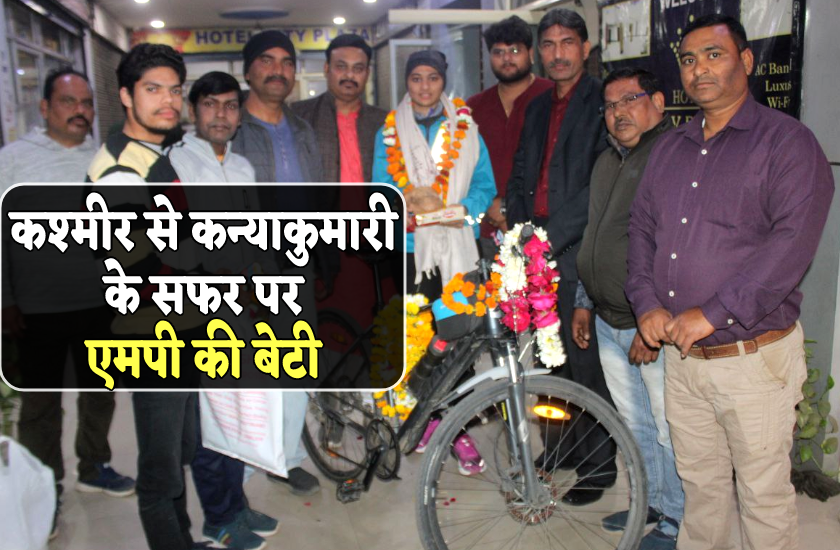 कश्मीर से कन्याकुमारी साइकिल यात्रा पर निकली एमपी की बेटी, इस शहर में हुआ जोरदार स्वागत