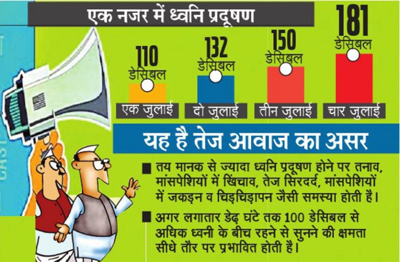 12 दिनों तक झेला ध्वनि प्रदूषण, निर्धारित मानक से था दोगुना
