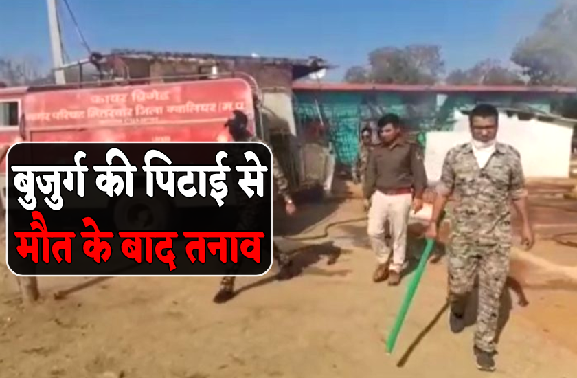 मध्य प्रदेश के ग्वालियर जिले के अंतर्गत आने वाले ररूआ गांव में सोमवार को पिटाई के कारण देर रात बुजुर्ग की मौत हो गई थी। घटना के बाद से गांव में तनाव के हालात हैं। घटना के बाद मंगलवार को गुस्साए मृतक के परिजन ने बुजुर्ग के साथ मारपीट करने वाले आरोपियों के घरों में आग लगा दी। गांव में बवाल की सूचना मिलते ही पुलिस के आला अधिकारी मौके पर पहुंचे और हालात को संभालने के लिए यहां भारी पुलिसबल तैनात किया गय है।
