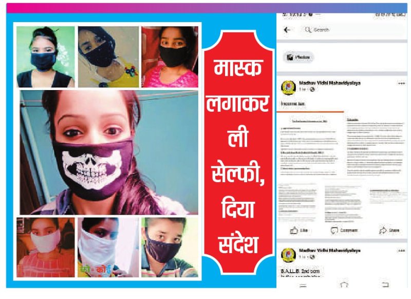 वहीं विजयाराजे शासकीय कन्या स्नातकोत्तर महाविद्यालय मुरार की राष्ट्रीय सेवा योजना इकाई की स्वयंसेविकाएं आपातकालीन स्थिति में लोगों को जागरूक करने की मुहिम में निरंतर प्रयत्न कर रही हैं। गुरुवार को ऑनलाइन सेल्फी विद मास्क प्रतियोगिता का आयोजन किया गया। इसमें प्रथम स्थान मोनिका पाल, द्वितीय दिव्या पवैया और तृतीय स्थान विनीता गुर्जर ने प्राप्त किया। इसके अलावा आशा बाथम, संजू, डॉली, ज्योति, शिवानी आदि छात्राओं ने भाग लिया। कार्यक्रम अधिकारी डॉ. शुभा श्रीवास्तव और डॉ. मंजू सिंह वीर ने भी सहभागिता की।