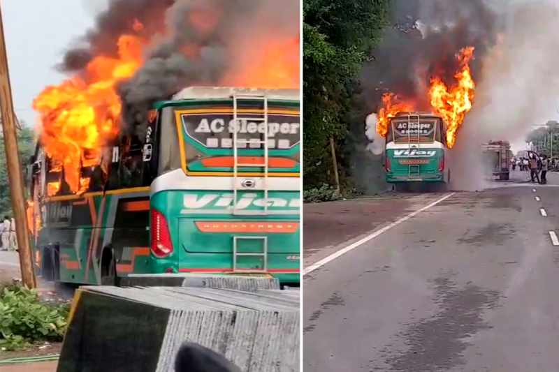 यात्रियों से खचाखच भरी बस में लगी आग (Photo Source- Patrika Input)