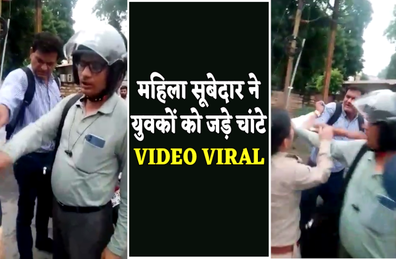 हेलमेट न लगाने वालों को पीट रही पुलिस, चालक ने फेंककर दिया नोट तो महिला सूबेदार ने जड़े थप्पड़, वीडियो वायरल