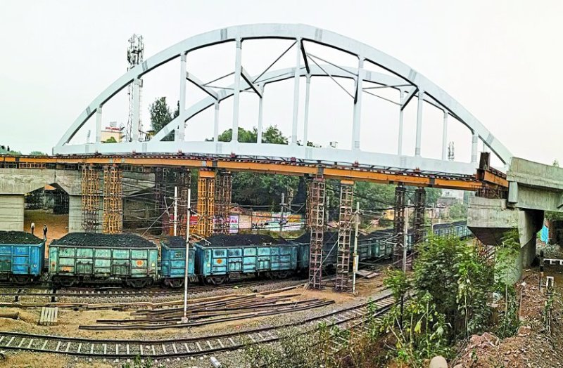 पड़ाव आरओबी : एक घंटे में दूसरी ओर पहुंचा धनुषाकार हिस्सा, दूसरा तीन दिन बाद बनना होगा शुरू