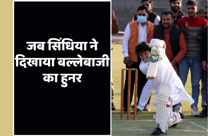 मैदान में सिंधिया ने दिखाया बल्लेबाजी का हुनर