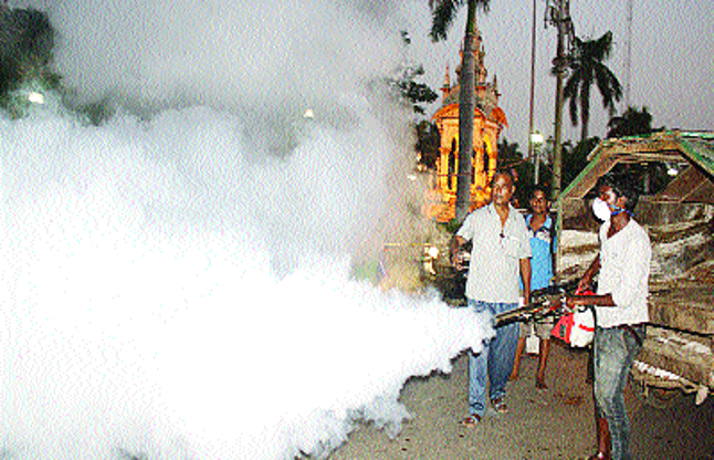 मलेरिया के प्रकोप को देखते हुए कई वार्डो में कीटनाशक दवाओं का छिड़काव कराया गया।
