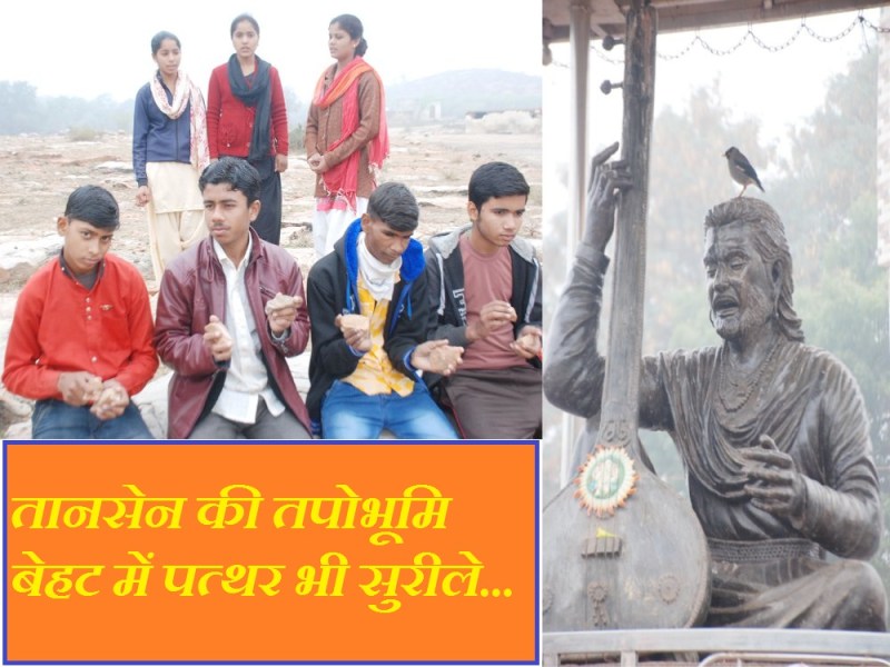 संगीत सम्राट तानसेन की साधना स्थली बेहट के दूधिया पत्थर भी सुरीले हैं। इतने सुरीले कि संसाधनों के अभाव में यहां संगीत विद्यालय के विद्यार्थियों ने पत्थरों से ही संगत कर ली है। ध्रुपद गायन की तालीम ले रहे युवा इन धवल, चमकीले पत्थरों की मधुर ताल पर ही अपने कंठ का सुर साध रहे हैं।