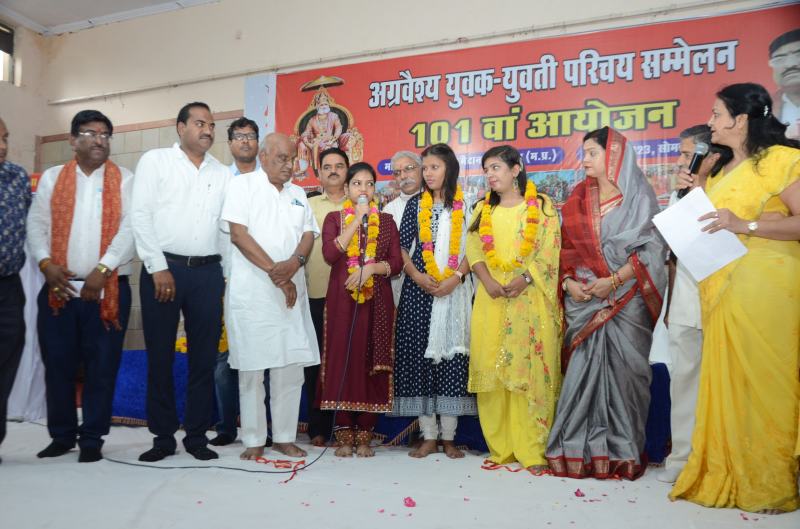 ग्वालियर. अग्रवाल परिचय सम्मेलन की ओर से 101 वा युवक-युवती परिचय सम्मेलन फूलबाग स्थित मानस भवन में संपन्न हुआ। परिचय सम्मेलन में इस बार अग्रवाल समाज के साथ-साथ जैन समाज, गहोई वैश्य, माथुर, माहेश्वरी समाज के युवक-युवतियों के पंजीयन किए गए थे। मंच से 120 युवक-युवतियों ने विवाह के लिए परिचय दिए। कार्यक्रम के मुख्य अतिथि पूर्व विधायक रमेश अग्रवाल थे, उन्होंने कहा कि इस तरह के कार्यक्रमों से समाज में जागरूकता आती है, साथ ही युवक-युवती एक-दूसरे को पसंद भी कर लेते हैं। मंच पर परिचय देने आईं अधिकांश युवतियों का यही कहना था जो मेरे माता-पिता का सम्मान करे, वही मेरा जीवनसाथी बनेगा। कार्यक्रम में प्रशांत हुड्डावाल, पूर्व महापौर समीक्षा गुप्ता, बीज निगम के अध्यक्ष मुन्नालाल गोयल, भाजपा संयोजक पारस जैन, प्रदेश उपाध्यक्ष आप पार्टी रोहित गुप्ता, पूर्व नगर पालिका अध्यक्ष कैलाश मित्तल आदि मौजूद थे। कार्यक्रम में संस्था के राष्ट्रीय अध्यक्ष राजेश ऐरन ने कहा कि जो हमारी सुनेगा वैश्य समाज उसी को चुनेगा। मंच पर युवक-युवतियों का परिचय मुकेश सिंघल, नीलम शाह, बबीता अग्रवाल, मीनाक्षी गोयल, ज्योति अग्रवाल ने कराया। कार्यक्रम में आनन्द अग्रवाल, दिलीप अग्रवाल, अनिल गर्ग, जयप्रकाश अग्रवाल, ओमप्रकाश अग्रवाल, पीसी गुप्ता, महेंद्र अग्रवाल, साधना गोयल, कविता मंगल, लक्ष्मी अग्रवाल, रुचि अग्रवाल आदि मौजूद थे।