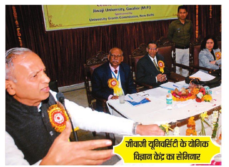 ग्वालियर. सिंधु घाटी सभ्यता में खुदाई से योगासन की विभिन्न मुद्राओं की मूर्तियां प्राप्त हुई हैं जिससे इसकी गरिमा का पता चलता है। योग 11500 वर्ष पुराना है तथा इसके उल्लेख श्रीमदभगवत गीता तथा रामायण में भी हुआ है। भारत में योग दर्शन से अब अंतरराष्ट्रीय जगत भी लाभान्वित हो रहा है। इसका प्रमाण है कि भारत के प्रयासों से संयुक्त राष्ट्र ने 21 जून को योग दिवस मनाना प्रारम्भ कर दिया है। यह बात मुख्य अतिथि के रूप में उपस्थित भारतीय योग संस्थान दिल्ली के जनरल सेक्रेटरी देशराज ने दो दिवसीय राष्ट्रीय सम्मेलन के शुभारंभ अवसर पर कही। यह सेमिनार जीवाजी यूनिवर्सिटी के योगिक विज्ञान केंद्र की ओर से गालव सभागार में आयोजित किया जा रहा है। कार्यक्रम में विशिष्ट अतिथि के रूप में सवयस योग विश्वविद्यालय बेंगलुरु के प्रो. एमके श्रीधर गुरुकुल कांगड़ी विश्वविद्यालय के डीन प्रो. ईश्वर भारद्वाज मौजूद रहे। अध्यक्षता जीवाजी विश्वविध्यालय की कुलपति प्रो. संगीता शुक्ला ने की।