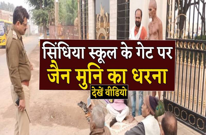 सिंधिया स्कूल के गेट पर जैन मुनि का धरना