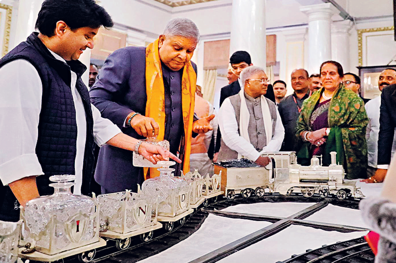 जय विलास पैलेस में केंद्रीय मंत्री ज्योतिरादित्या सिंधिया के साथ उपराष्ट्रपति जगदीप धनखड़.