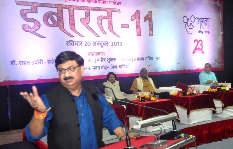 इबारत की इस महफि ल को परवान पर पहुंचाया सबके महबूब शायर राहत इंदौरी ने। शायरी के बेबाकी अंदाज को उन्होंने जिस लहजें में सुनाया कि देर रात तक श्रोता उन्हें दाद देते नहीं थके। सबसे पहले उन्होने शेर पढ़ा, अपना आवारा सिर झुकाने को तेरी दहलीज देख लेता हूं, और फि र कुछ दिखाई दे या न दे, काम की चीज देख लेता हूं।