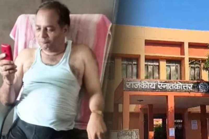Hamirpur News: हमीरपुर के कुछेछा में राजकीय स्नातकोत्तर महाविद्यालय का है। अखिलेश साहू हेड क्लर्क हैं। उसकी कई तस्वीरें सोशल मीडिया वायरल हो रही है। एक तस्वीर में अखिलेश साहू कच्छा-बनियान में कुर्सी पर बैठ किसी से मोबाइल पर बात करता दिखता है। तस्वीरें कॉलेज के ही किसी कर्मचारी ने खींच ली। इसके बाद सोशल मीडिया पर अपलोड कर दी।