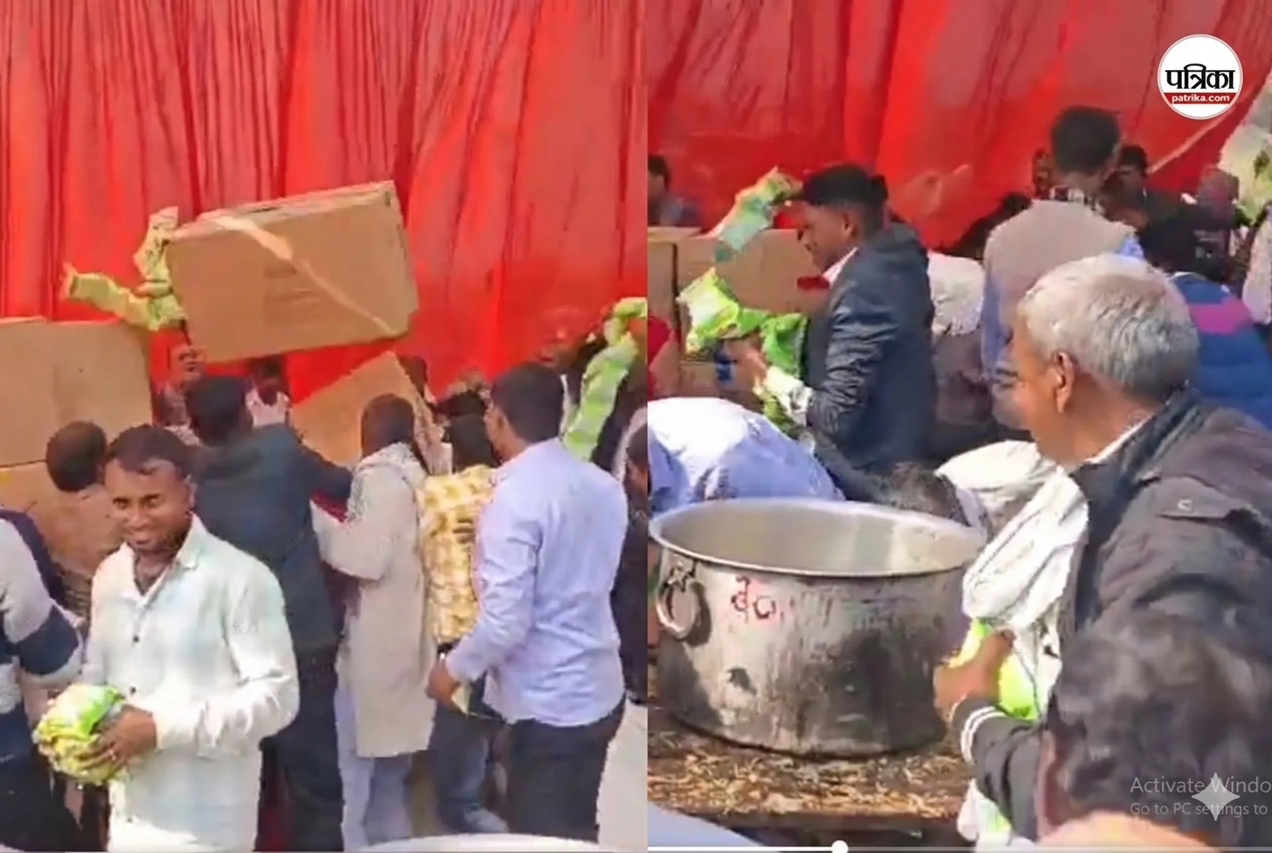 विवाह में आलू-पकौड़ा और चिप्स के पैकेट लूटते लोग, PC- Patrika