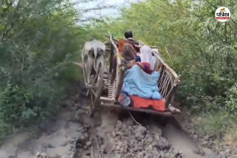 इलाज के लिए बैलगाड़ी से गर्भवती महिला को ले जाते हुए परिजन, PC- X