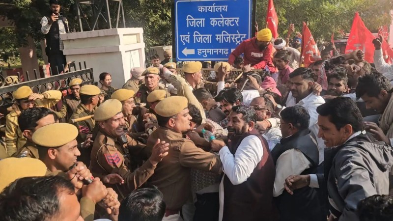 पुलिसकर्मी व पूर्व विधायक एक दूसरे के गिरेबान तक जा पहुंचे। प्रदर्शन के दौरान मजदूर विरोधी श्रम संहिताओं, किसान विरोधी कानूनों, फसलों के नुकसान, बीमा क्लेम, मनरेगा, स्मार्ट मीटर सहित विभिन्न मुद्दे शामिल रहे। इस मौके पर हुई सभा में वक्ताओं ने कहा कि केन्द्र सरकार ने 21 नवंबर 2025 को पूंजीपतियों और कारपोरेट घरानों के हित में चार नई श्रम संहिताओं को अचानक लागू कर दिया। जबकि इस निर्णय पर न तो किसी श्रमिक संगठन से राय ली गई और न ही लोकतांत्रिक प्रक्रिया का पालन किया गया।