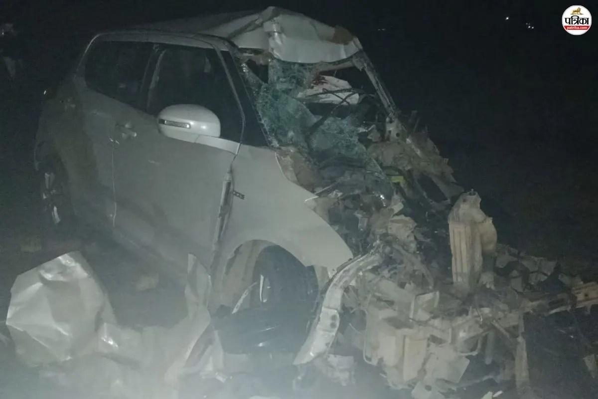 हादसे में क्षतिग्रस्त कार (फोटो-पत्रिका)