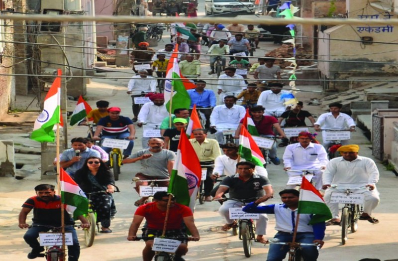 संगरिया. स्थानीय अभिनव संगरिया के तत्वाधान में पर्यावरण दिवस के अवसर पर अभिनव साइकिल रैली का आयोजन मंगलवार को किया गया। कार्यक्रम को सम्बोधित करते हुए प्रदेश कांग्रेस कमेटी सदस्य शबनम गोदारा, भाजपा महिला मोर्चा जिलाध्यक्ष गुलाब सींवर, माहेश्वरी सभा के अध्यक्ष सीताराम सोमानी, कैप्टन वीरेंद्र मोहन ऐरी, भारत विकास परिषद के जिला प्रभारी अरुण अरोड़ा ने कार्यक्रम को सम्बोधित करते हुए ढाई वर्ष से जारी इस साईकिल अभियान के अभिनव कार्यकर्ताओं को साधुवाद देते हुए स्वास्थ्य सुधारने व प्रदुषण से दूर रहने के महत्वपूर्ण उपायों में से एक साईकिल का उपयोग अपने नैतिक जीवन के कार्यो के लिए करना है।