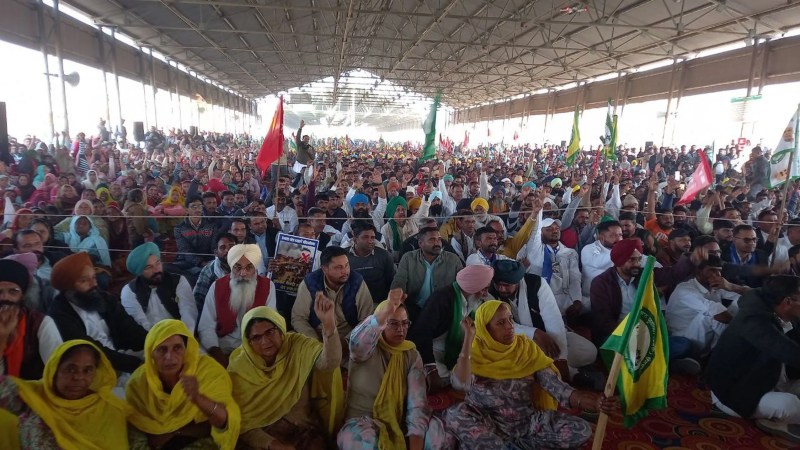 हनुमानगढ़: जंक्शन धानमंडी में किसानों की महापंचायत में मौजूद किसान व अन्य।