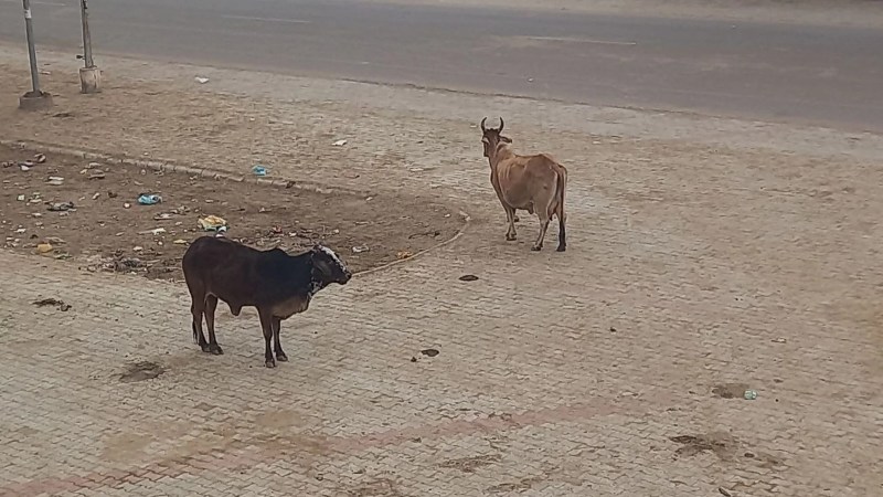 हनुमानगढ़ में सर्दी में ठिठुरते निराश्रित गोवंश।