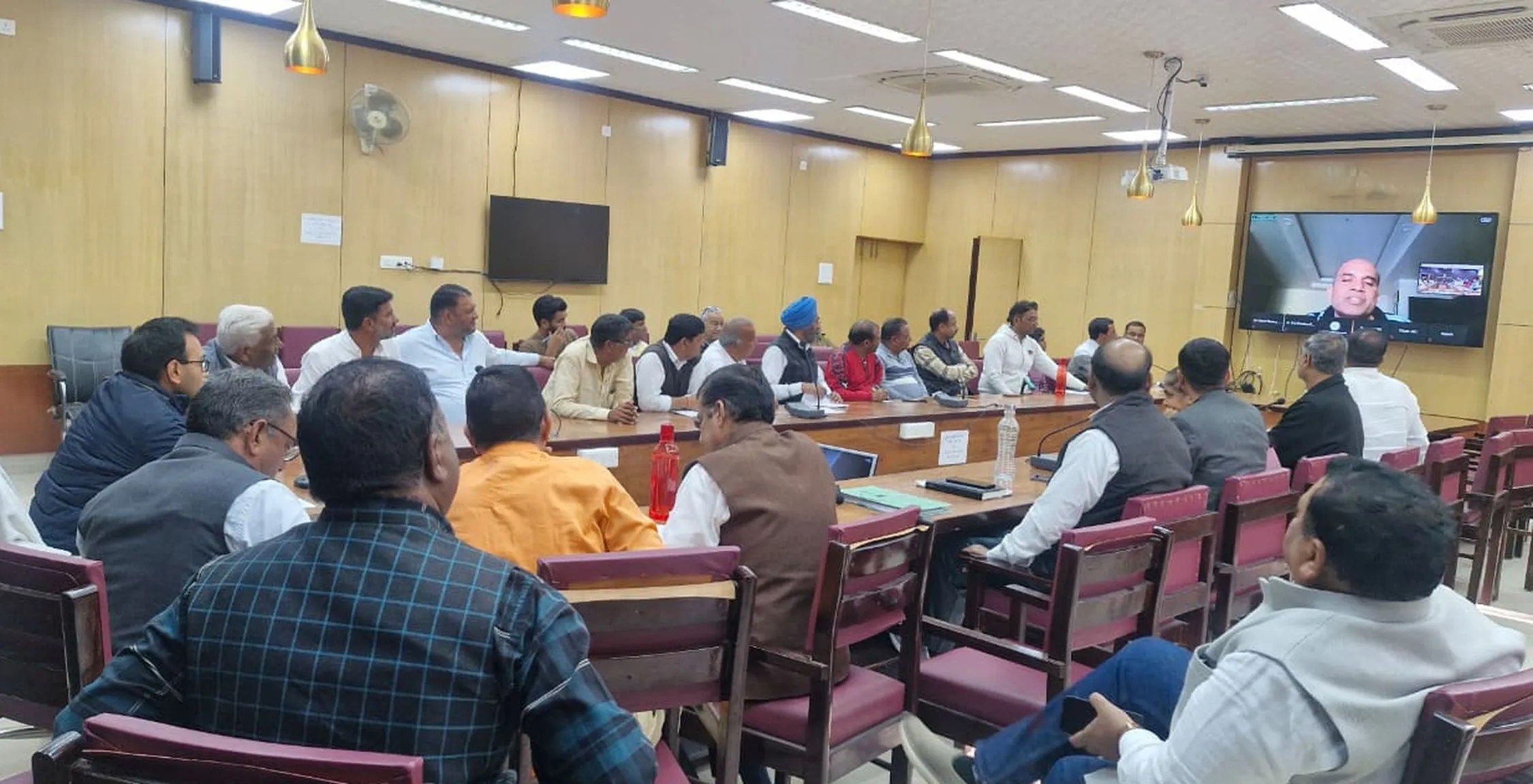 हनुमानगढ़: जिला कलक्ट्रेट सभागार में वीसी में मौजूद अधिकारी व व्यापारी।