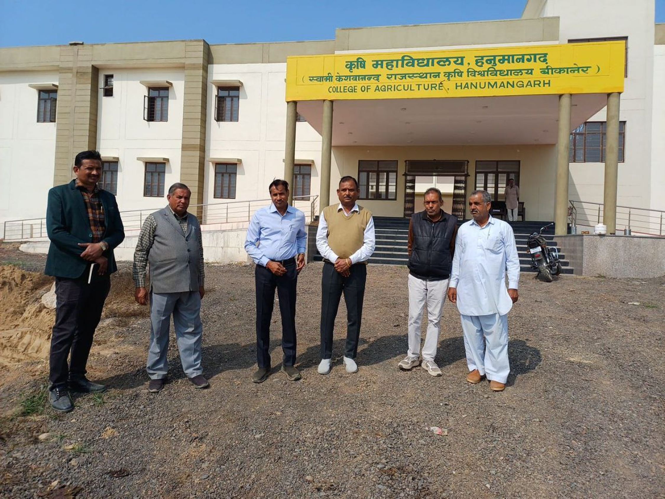 हनुमानगढ़ में राजकीय कृषि कॉलेज का निरीक्षण करते कृषि विश्वविद्यालय के रजिस्ट्रार देवाराम सैनी व मौजूद अन्य अधिकारी।