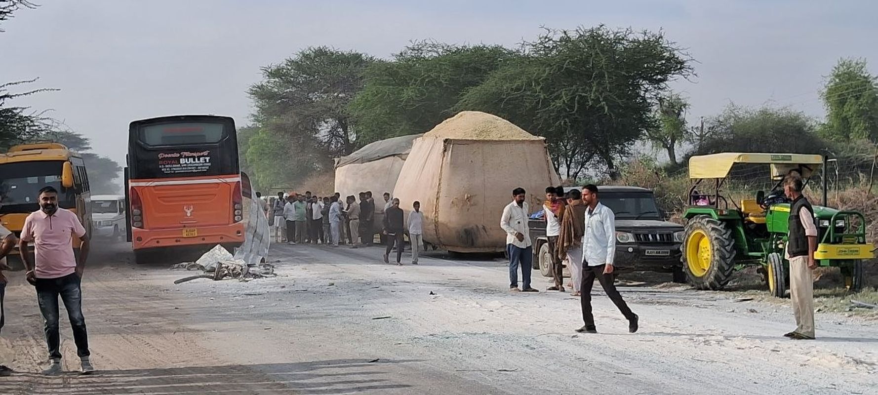 हनुमानगढ़: रावतसर के पास हादसा स्थल पर खड़े लोग व क्षतिग्रस्त वाहन। पत्रिका।